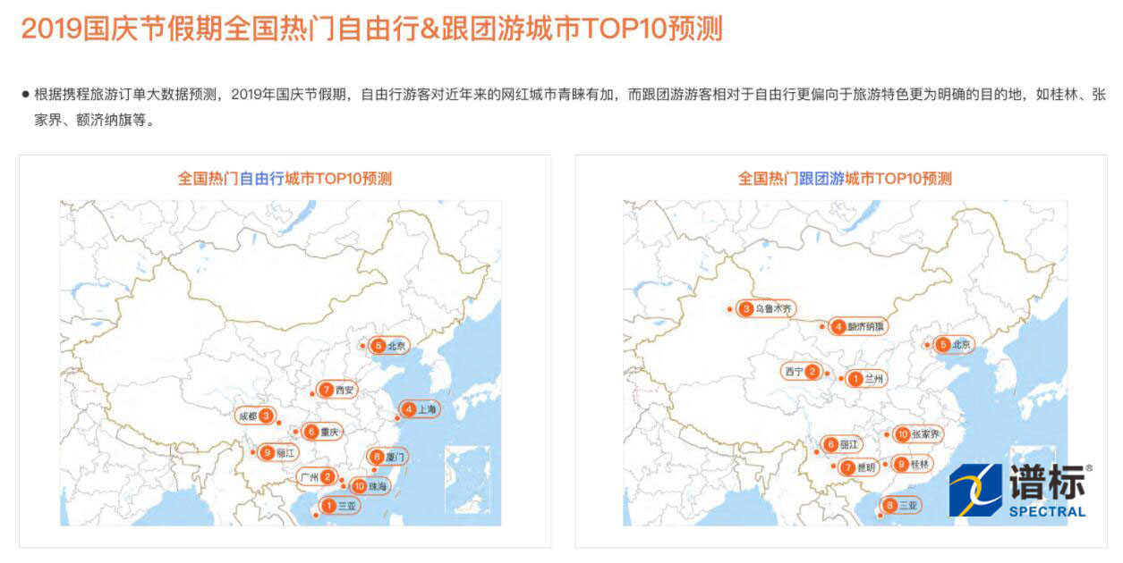 假日將來臨期間,摘錄百度地圖聯(lián)合交通運(yùn)輸部科學(xué)研究院、中國天氣網(wǎng)、攜程、百度百科發(fā)布《2019年國慶節(jié)假期出行預(yù)測報告》,預(yù)測出國慶期間的出行數(shù)據(jù)和狀況,譜標(biāo)科技愿能幫助到大家順利出行,安全度假。