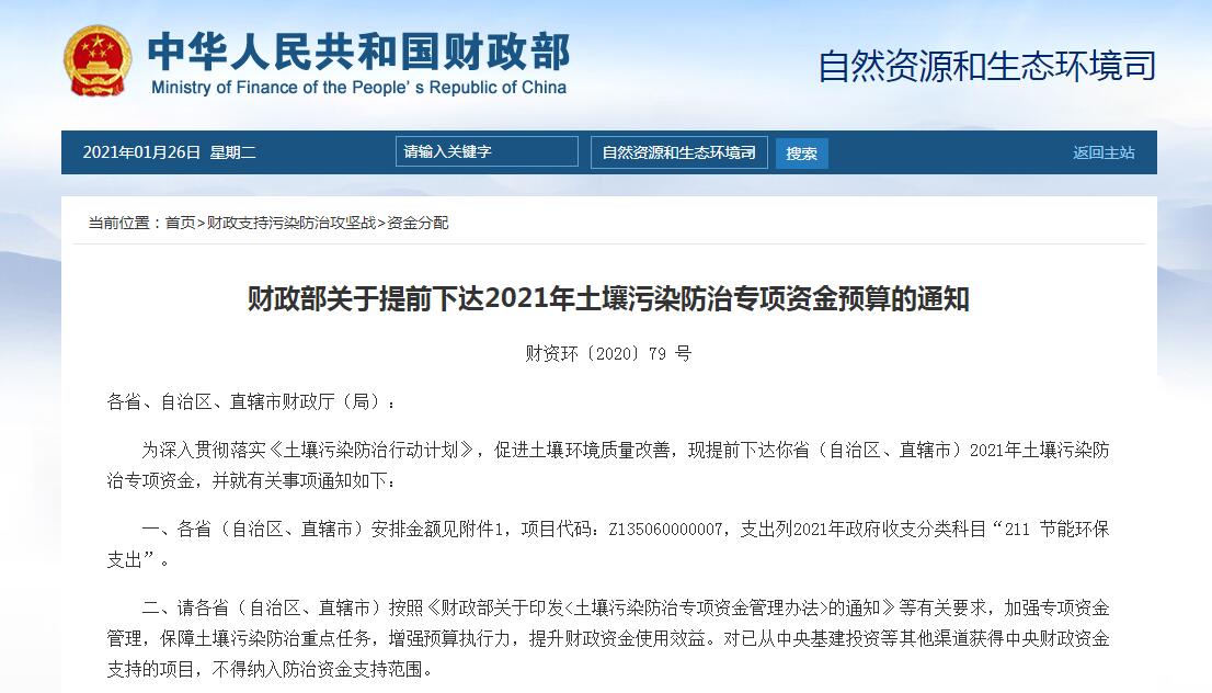 在發(fā)展中求生存,不斷完善,以良好信譽和科學的管理促進企業(yè)迅速發(fā)展2020年11月26日,財政部關(guān)于提前下達2021年土壤污染防治專項資金預(yù)算的通知,31個省市陸續(xù)下達關(guān)于2021年中央土壤污染防治資金的公示,中央補助28億元。