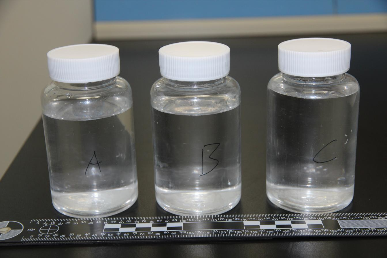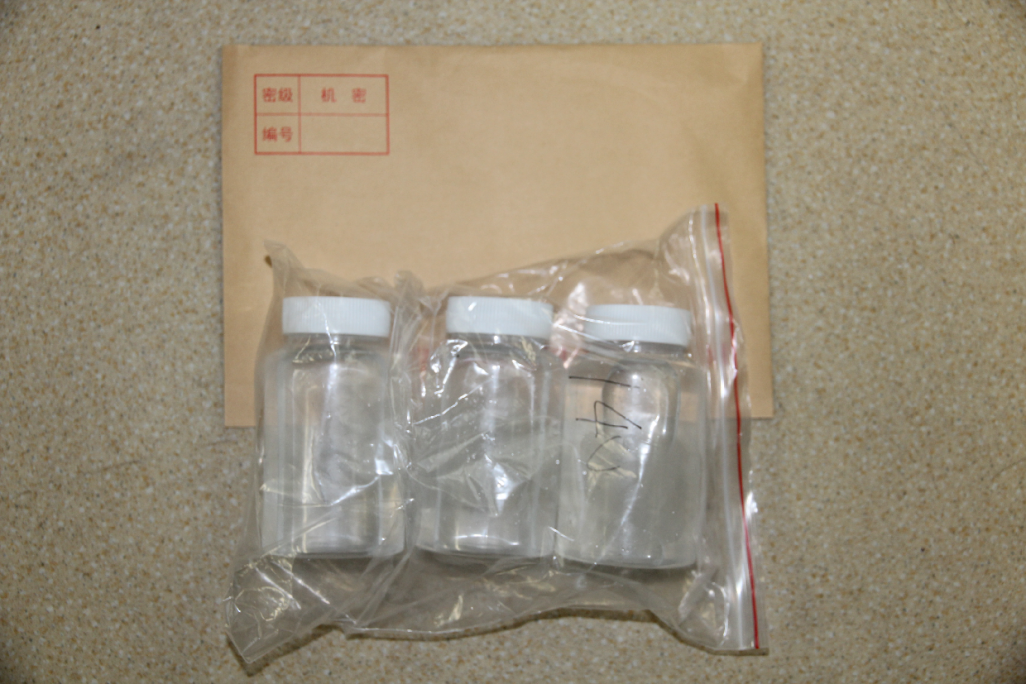 2020年10月27日收到公安部寄來的污水樣本,編號代碼14號,樣本為冷凍狀,融化后為PH值為中性。