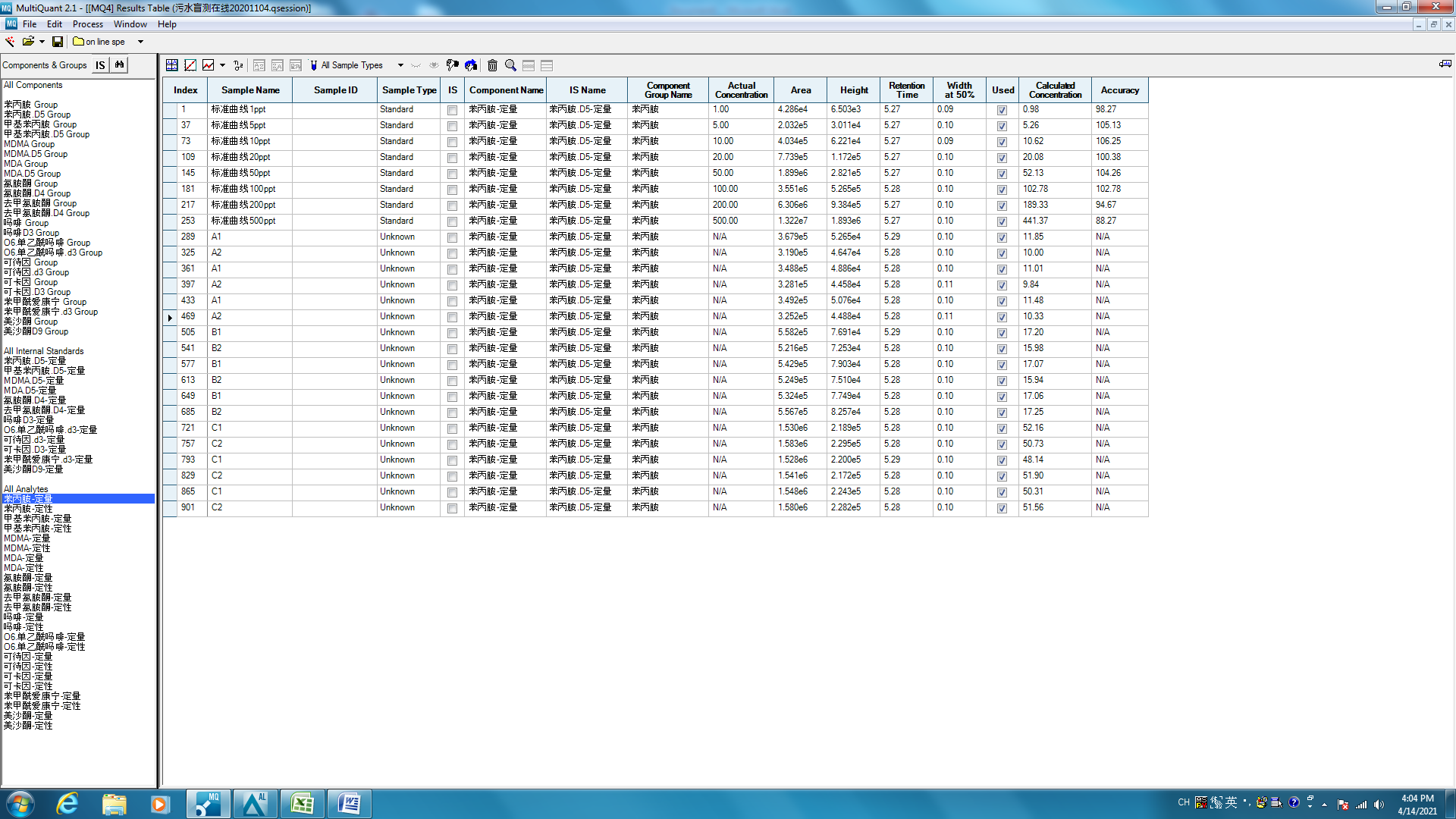 參與公安部污水中毒品定性定量能力驗證(盲測)