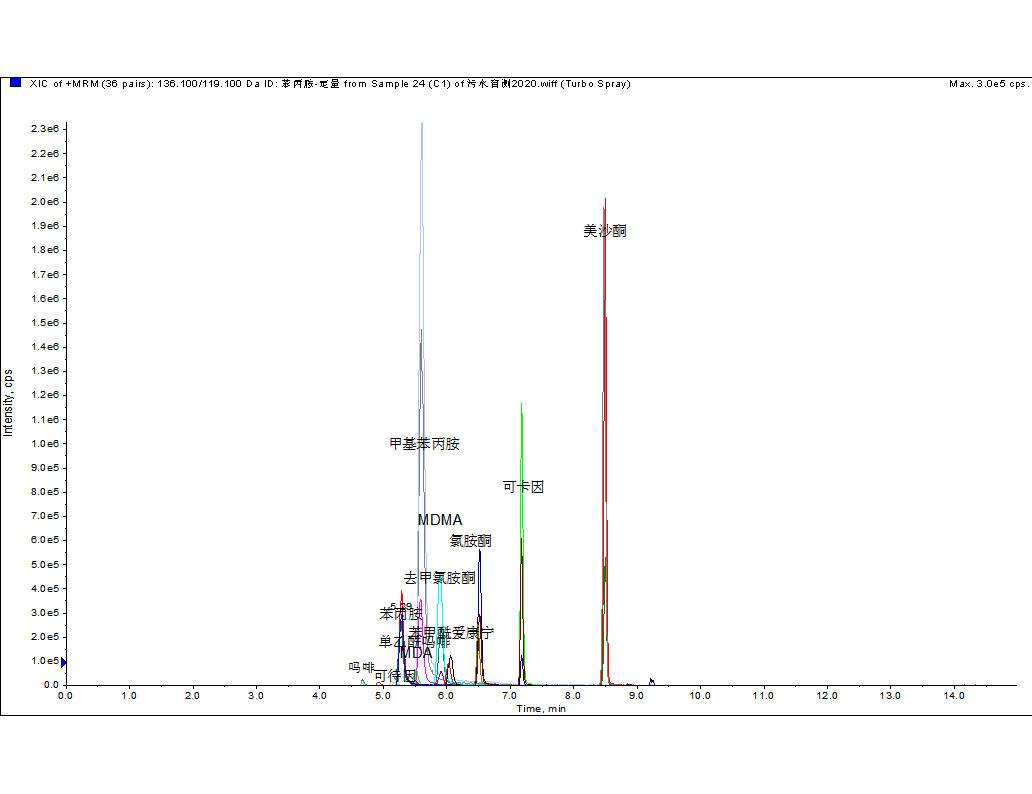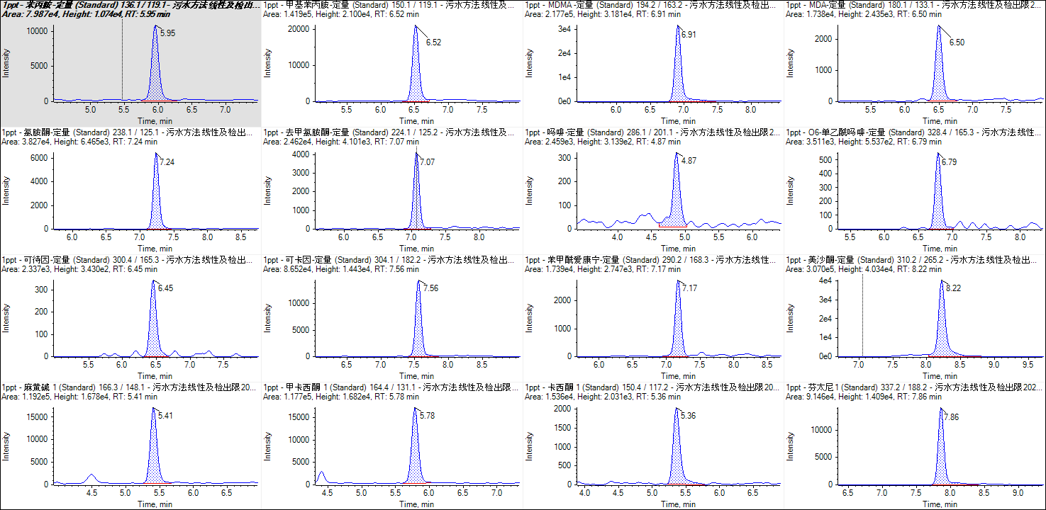 15種常見毒品1ng/L準確定量色譜圖