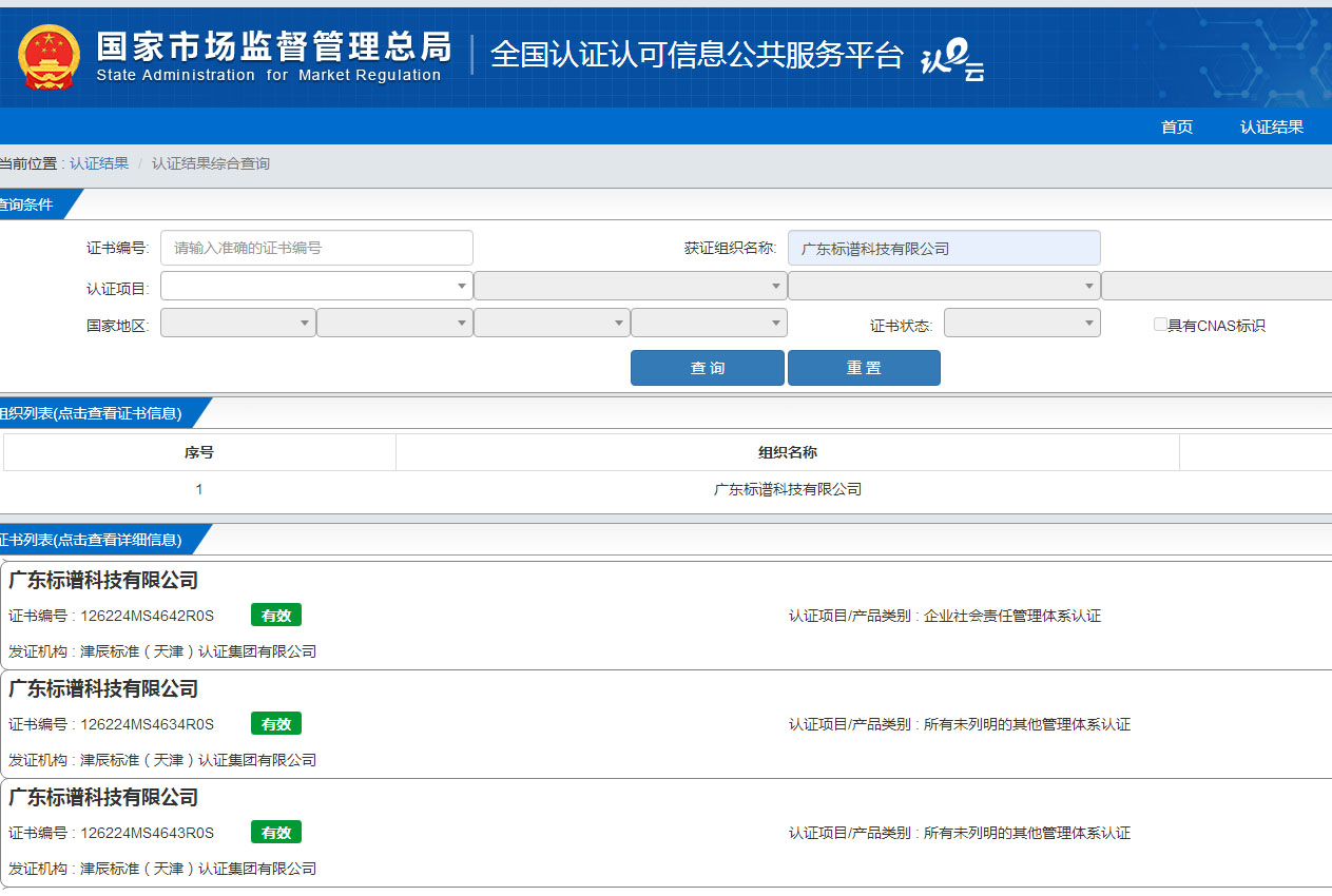 服務(wù)能力認(rèn)證網(wǎng)上可查:https://www.cnca.gov.cn/