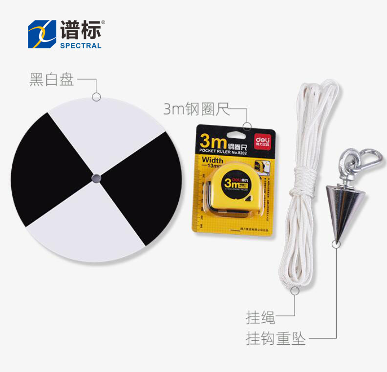 本品分四部分,即主體黑白盤(優(yōu)質黑白透明度盤,材質為亞克力板,直徑20CM)、使 盤沉降的不銹鋼重墜、卷尺(30m手搖圈尺或3m鋼圈尺)、不銹鋼掛鉤。