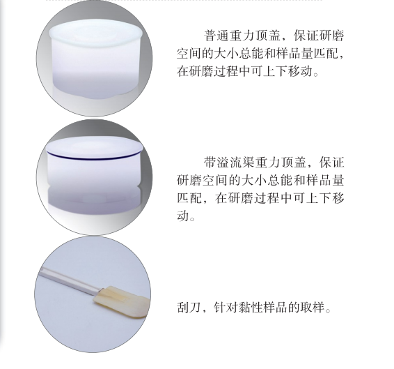 ● 研磨套件可以和盤托出,樣品收集方便,無損失