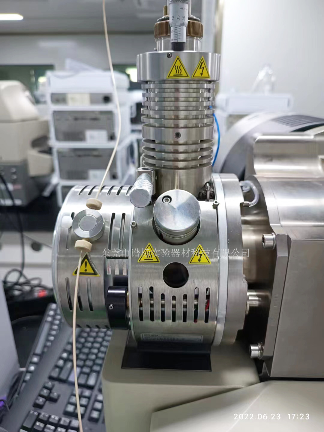 2022年6月,譜標(biāo)工程師在廣州某檢測公司維修AB SCIEX 4000三重四極桿質(zhì)譜儀離子源~離子源(英文名稱:Ion source)是使中性原子或分子電離,并從中引出離子束流的裝置。它是各種類型的離子加速器、質(zhì)譜儀、電磁同位素分離器、離子注入機(jī)、離子束刻蝕裝置、離子推進(jìn)器以及受控聚變裝置中的中性束注入器等設(shè)備的不可缺少的部件。