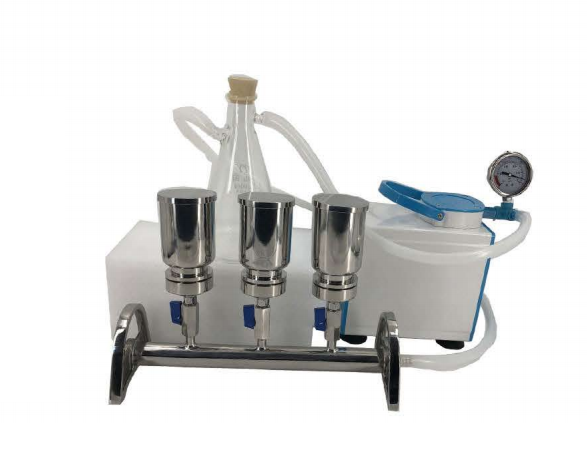 7.三聯(lián)過濾頭設(shè)計,可同時抽濾,提高工作效率。每個濾頭也可控制,方便操作人員靈活使用;